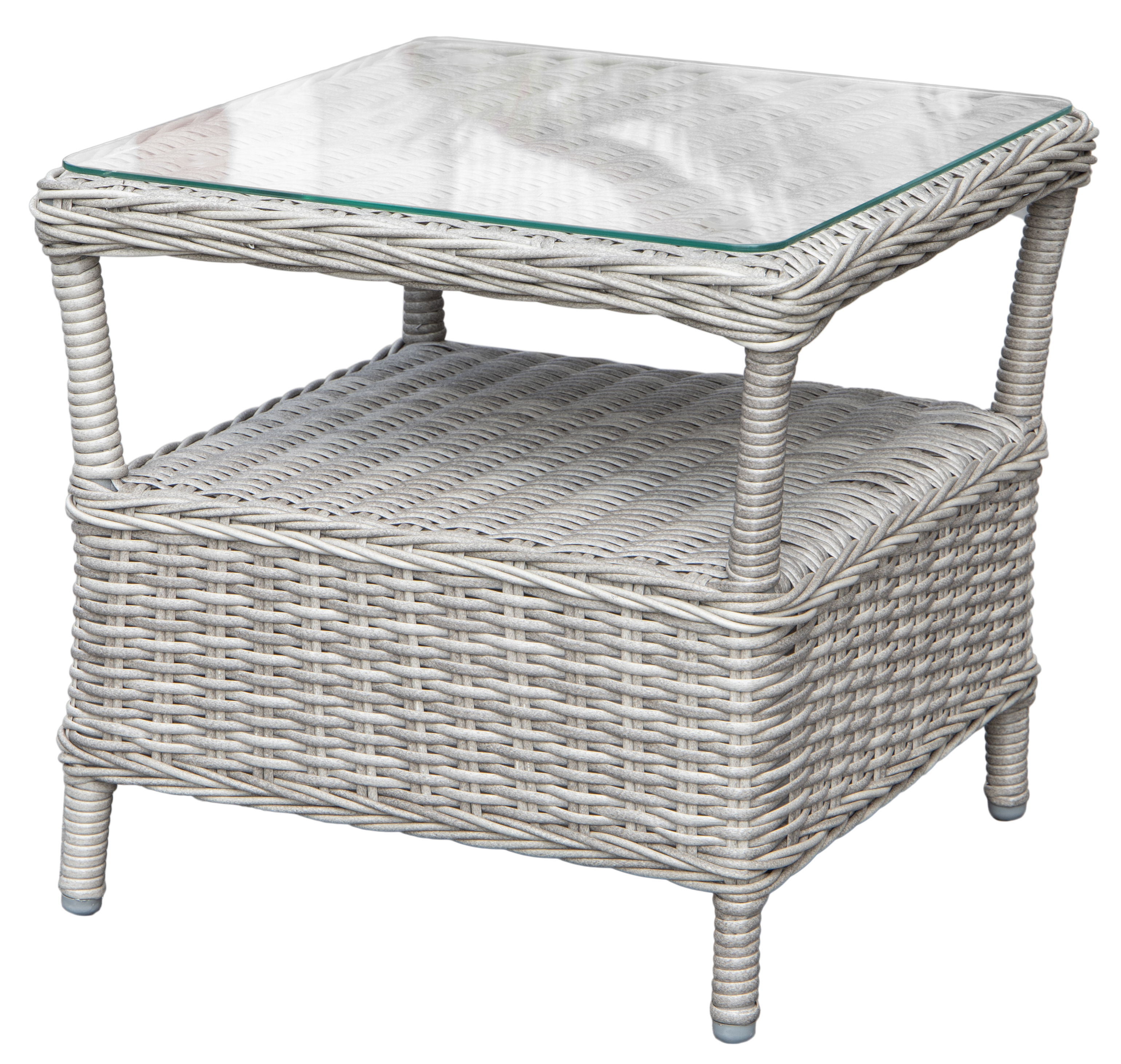 Det grå sidobordet från Tor-serien har en toppskiva av tempererat glas och passar bra tillsammans med Mercury utefåtölj som ger både komfort och stil. Fåtöljen är tillverkad i grå konstrotting på en stabil metallstomme och har en mörkgrå polyesterdyna för extra sittkomfort. Ryggdyna ingår ej, vilket ger möjlighet att anpassa efter eget tycke.