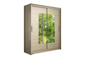 Leila Garderob 150 cm Skjutdörrar Svängd Spegel, Ek/Spegel