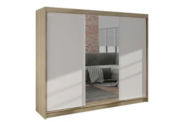 Cyria Garderob med Spegel 200x215 cm, Beige/Vit