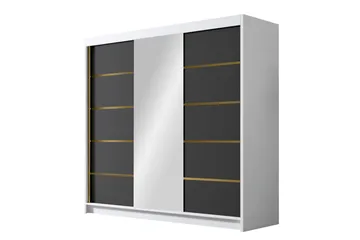 Emet Garderob med Spegel 150x200 cm, Svart/Vit
