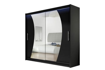 Lungos Garderob med Spegel 120x200 cm, Svart/Vit