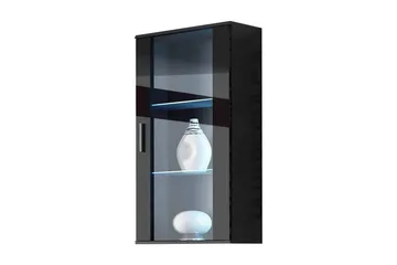 Tessan Vitrinskåp 45x32x117 cm, Svart/Vit Led-Belysning