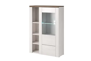 Tomeka Vitrinskåp 40 cm djup 80 cm bred 207 cm hög Ljust Trä Hylla Vänster, Vit/Trä