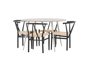 Lanzo Matgrupp 120 cm Rund med 4 Berit stolar, Whitewash/Svart