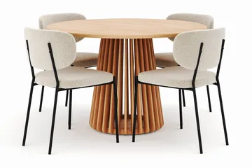 Peyra Matbord 120 cm Rund med 4 Sawako Stolar, Natur