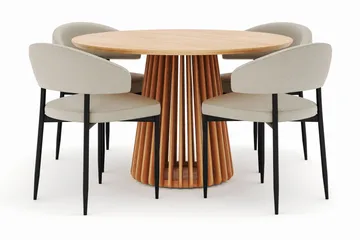 Peyra Matbord 120 cm Rund med 4 Gemmiano Stolar, Natur