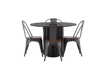 Copenhagen Matgrupp 115 cm Rund med 4 Chico Stolar, Svart