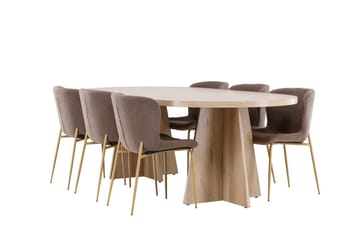 Bootcut Matgrupp 230 cm Rektangulär med 6 Modesto stolar, Whitewash/Brun