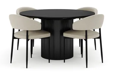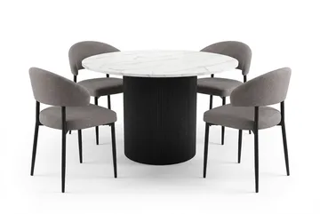 Uppveda Matbord 120 cm Runt Svart med 4 Sawako Greige Stolar, Svart/Vit/Greige