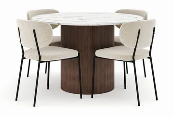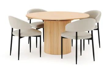 Lyon Matgrupp Rund med 4 st Viktoria Fåtölj, Trä/Vit/Beige