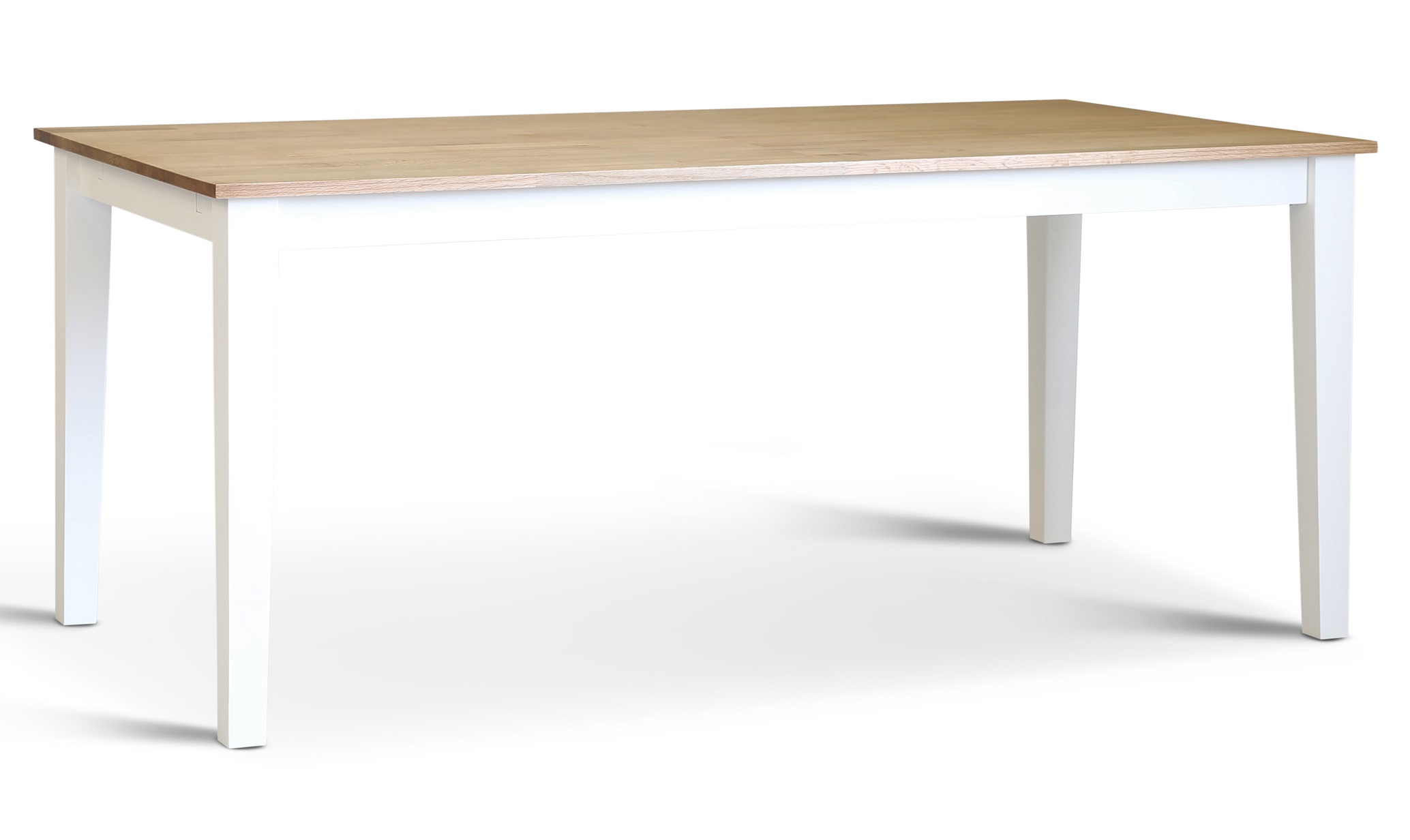 Matbordet har ett vitlackerat underrede som ger ett ljust och luftigt uttryck, medan bordsskivan i massiv, stavlimmad oljad ek tillför en naturlig värme och karaktär. Den rektangulära formen med raka linjer gör att bordet smälter in i både moderna och traditionella miljöer. För dig som vill ha extra plats vid större sällskap finns möjlighet att komplettera med tilläggsskivor (säljs separat).