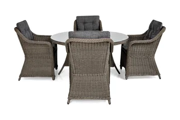 Marcus Matgrupp Utomhus 140 Rund + 4 Light Fåtöljer m Dyna, Grå