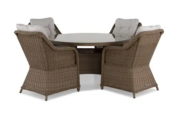 Marcus Matgrupp 140 Rund + 4 Fåtöljer m Dyna, Natur