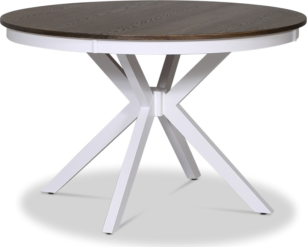 - Skagen matgrupp; runt matbord Ø120 cm - Vit / brunoljad ek med 4 st Skagen stolar (Kryss i ryggen) med brunoljad eksits