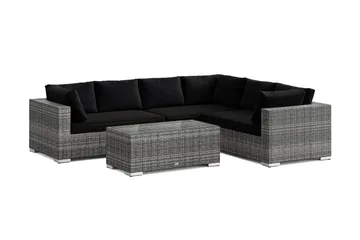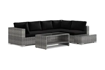 Bahamas utesoffa 5-sits med bord och hylla, Svart