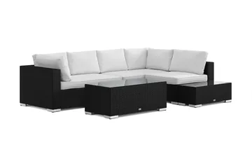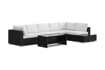 Bahamas L-formad utesoffa höger, 6-sits med bord och hylla, Svart