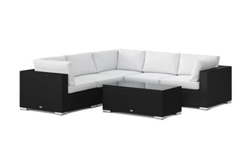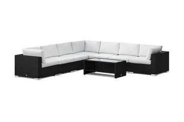 Bahamas L-formad utesoffa vänster, 6-sits med bord och hylla, Svart