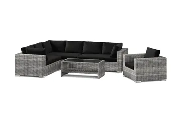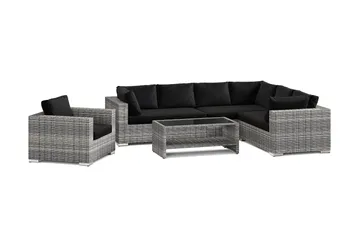 Bahamas L-formad utesoffa vänster, 6-sits med bord, Grå