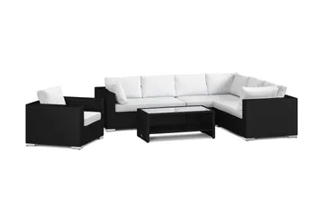 Bahamas utesoffa 6-sits vändbar schäslong med avslut och bord, Svart