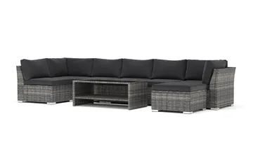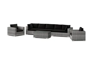 Bahamas utomhus soffgrupp 6-sits med två fåtöljer och bord med hylla, Grå