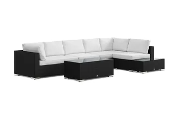 Bahamas utesoffa 6-sits vändbar schäslong med avslut och bord, Svart