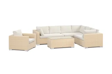 Bahamas utomhus L-soffa vänster 7-sits med fåtölj och bord med hylla, Beige