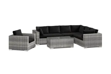 Bahamas utomhus hörnsoffa 6-sits vändbar med fåtölj och bord, Grå