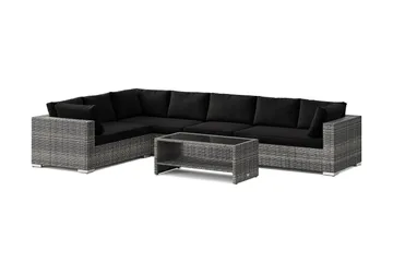 Bahamas L-formad utesoffa höger, 7-sits med bord, Svart