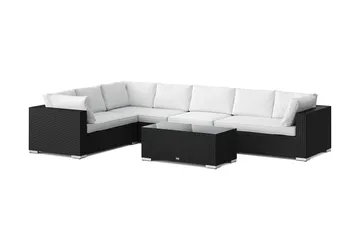 Bahamas L-formad utesoffa vänster, 7-sits med bord, Svart
