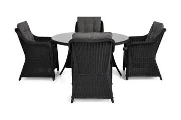 Marcus Matgrupp 140 Rund + 4 Fåtöljer m Dyna, Svart