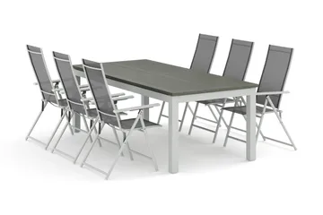 Las Vegas utomhus matgrupp förlängningsbart 152-210x90 cm med 6 Las Vegas positionsstolar, Vit