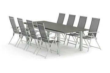 Monaco utomhus matgrupp förlängningsbart 210/310x90 med 8 Sanna positionsstolar, Svart/Grå