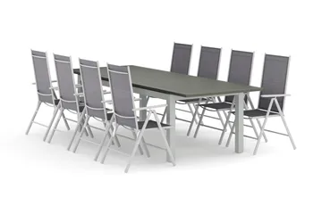 Monaco utomhus matgrupp förlängningsbart 210/310x90 med 8 Maggie positionsstolar, Svart/Grå