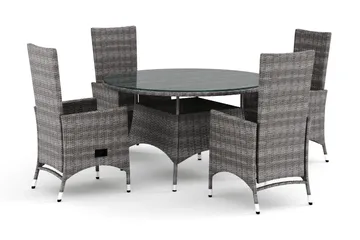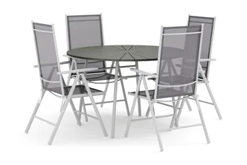 Thor utomhus rund matgrupp 140 cm med 4 Thor Light utefåtöljer, Grå