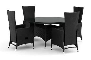 Tunis utomhus rund matgrupp 120 cm med 4 Maggie positionsstolar, Svart/Svart