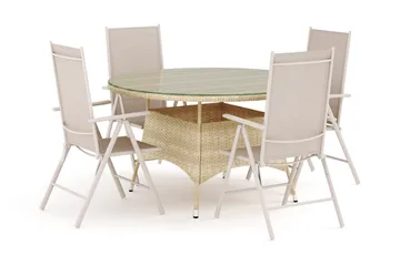 Thor utomhus rund matgrupp 140 cm med 4 Maggie positionsstolar, Beige