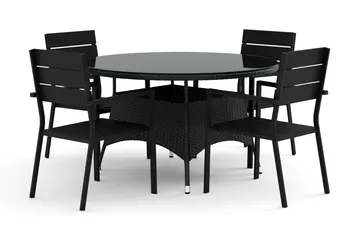 Tunis utomhus rund matgrupp 120 cm med 4 Jenny matstolar, Svart/Svart