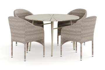 Tunis utomhus rund matgrupp 120 cm med 4 Thor fåtöljer, Beige/Beige