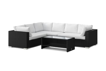 Marcus Loungegrupp utomhus - Soffgrupp till trädgård 5-sits - Loungeset konstrotting utemöbler, Mörkbrun / Svarta dynor