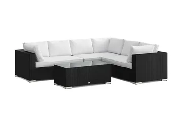 Bahamas L-formad utesoffa vänster, 6-sits med bord, Svart