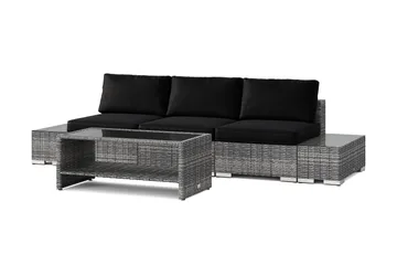 Bahamas utesoffa 3-sits med bord med hylla, Svart