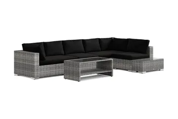 Bahamas L-formad utesoffa höger, 6-sits med bord, Svart
