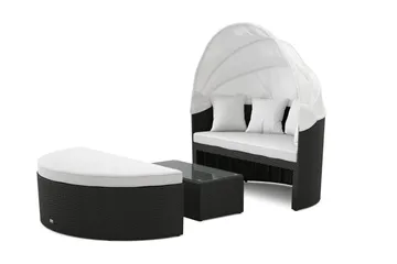 Florens Rund dubbel Solsäng med tak - Soffbord med glasskiva i konstrotting, Svart